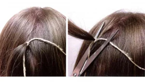 • зв’язані пасма волосся зрізаються безпосередньо над шкірою голови, на потилиці